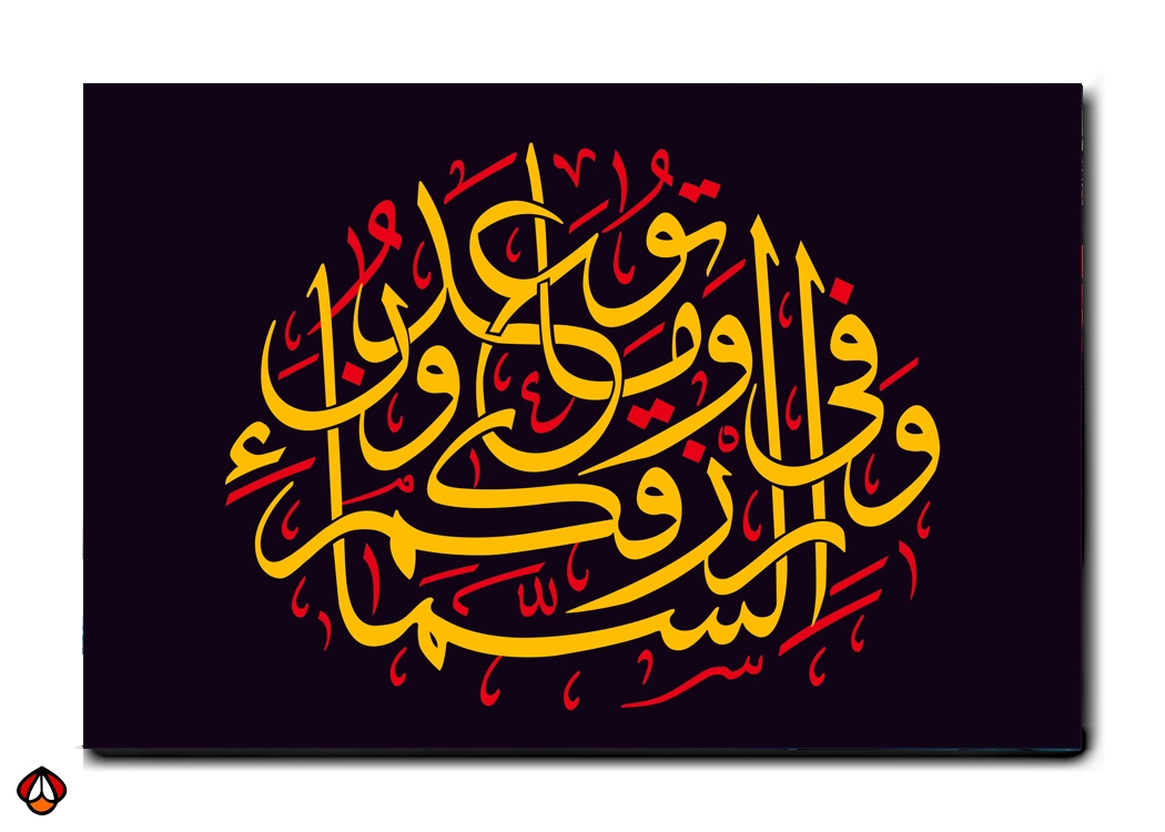 This elegant Arabic calligraphy artwork features the powerful verse "فَتَوَكَّلْتُ عَلَىٰ ٱللَّهِ وَرَزَقَنِيَ ٱلسَّمَٰوَٰتِ", which translates to: "So I have placed my trust in Allah, and He has provided for me from the heavens." The striking colors of red and yellow against the dark background give this piece a bold yet graceful feel, making it perfect for spiritual decor.
